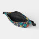 This fanny pack is ready to be customized with your choice of initial and features a pattern of padel tennis rackets and balls in shades of terra cotta, gold, teal, yellow and cream against a navy blue background.