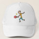 Padel Tennis player plays the ball in a fun design showing stickman padel player, with racket and ball.