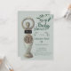 This elegant Pagan Goddess Baby Shower Invitation featuring a statue of the goddess with a spiral on her belly. Plus leaves on a delicate, lovely green that promises growth.