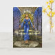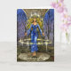 Le gardien du temple se lève dans la méditation dans un cercle de pouvoir. Les mots "penser à vous" au bas de la carte.