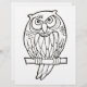 Coloriage de la page du livre. Caricature de hibou assise sur une branche regardant devant.