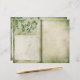 Arrière - plan à effet vieilli vert avec des lignes d'écriture faible et un feuillage vert foncé aquarelle. Ce papier de livre à grappes est parfait pour créer des journaux de jardinier ou de nature. Ce papier présente la même conception à l'avant et à l'arrière, donc tout ce que vous avez besoin de faire est de plier en deux pour créer vos pages de journal. Des motifs de verdure assortis sont disponibles dans notre boutique Zazzle, ainsi que de nombreux autres styles de scrapbook et de papier journal. Pour obtenir les meilleurs résultats, sélectionnez un papier mat et texturé.