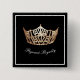 Pin is shown with a photo print of a gold queen's crown, text: Pageant Royalty.