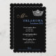 Created style for a fun fresh setting for your pageant or luncheon event. Shown in classic black on front and back on fine quality paper, this program/menu card has a silvertone Miss America style type crown in the upper corner. Text in centre. Fancy scalloped edging. We've created the template for you, simply change the information to your own at the right side of your screen in the selection menu. Customize further if you desire by changing the paper selection,text or text colours, text styles or upload your own image. Lovely choice for receptions, retirement parties, pageant parties, balls, luncheons, events, weddings or veterans events.