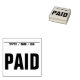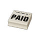 This basic rubber stamp design features the messages "PAID" and a line where a payment date can be written. It could perhaps be used to indicate that a bill or invoice has been paid in full.