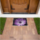 Ce somptueux tapis de portes présente une photo magnifiquement détaillée d'une fleur de marguerite africaine. La photo a été numériquement modifiée, ce qui donne une jolie fleur de couleur violet avec différentes nuances de violet sur les pétales et un centre violet foncé.