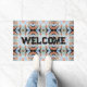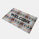 Doormat Welcome Door Mat with customizable text template Welcome typography and printed with Abstract Split Ends Pattern And Soft Pastel Colors On Black four sided mirrored image repeat pattern original graphic art design illustration by TheFabricSeal at Zazzle #ZazzleMade https://www.zazzle.com/store/thefabricseal