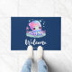 Porte d'accueil avec l'image d'une pieuvre girly mignonne avec une fleur sur la tête. De grands yeux brillants et un visage amical.