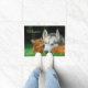 Chat somalien et huggle de chien de traîneau sibérien ensemble, ils aiment un un autre, une amitié étroite. Une photo animale mignonne prise par Katho Menden. Cet accueil de natte est une idée de cadeau pour le chat et les amoureux de les chiens. http://www.zazzle.com/kathom_photo - personnalisez-le avec votre nom ou texte.