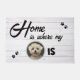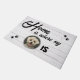 Accueil Où Mon Chien Est Personnalisé Photo Wood Welcome Mat | Ce design mignon et inspirant présente la citation "Home is where my [your pet's face] is" dans la typographie moderne et tendance, flanquée d'empreintes noires, sur un faux arrière - plan en bois blanc. C'est un grand cadeau pour le propriétaire du chien qui aime son chien.