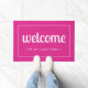 Tapis de porte d'accueil moderne Hot Rose et Blanc Personnalisé. Typographie audacieuse.