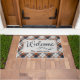 Ce tapis fait la parfaite déclaration d'automne que cravate votre décor de porche d'automne ensemble et fait une déclaration confortable mais élégant à tous vos invités. Avec un arrière - plan en plaid orange, crème et noir qui compense la belle police de caractères de bienvenue scénarisée et s'épanouit, il suffit d'ajouter votre nom de famille ou un texte spécial pour que ce tapis soit le vôtre.