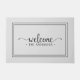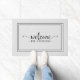 Tapis moderne Gris et Noir. Base grise avec cadres noirs et "bienvenue" dans une police de script avec glyphe. Customisez avec votre nom de famille/nom de l'entreprise ou le texte souhaité. C'est un design épuré et simple qui le rend moderne et minimaliste. Grâce à ce design monochrome propre et neutre, il conviendra à la plupart des endroits et des couleurs - à la fois la famille et la société. Si vous voulez une autre base de couleurs que le gris, vous pouvez changer cette facile à l'intérieur de l'outil de conception.