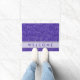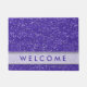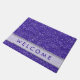 Un tapis de porte pourpre chic d'accueil de parties scintillantes pour inviter vos invités dans le style. La natte pourpre de regard de parties scintillantes de faux a une bande de gris argenté avec les mots bienvenus, cela que vous pouvez customiser, pour la rendre unique et spéciale.