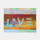 Natte de Bohème hippie de boho d'amour. Rouille vert clair, rose, jaune, couleurs de cuivre. Mot "AMOUR" peint sur le bois. Sortez dans le style avec cet article à la maison coloré, chic, à la mode, frais, moderne de décor.