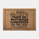 Bienvenue aux invités avec un rappel ludique de qui est vraiment en charge avec ce tapis de porte personnalisé "Tous les invités doivent être approuvés par le chien". L'adorable détail empreinte de patte et le nom de famille personnalisable ajoutent une touche de charme à ce mat de porte fonctionnel et humoristique. Fabriqué à partir de coco durable, il est parfait pour piéger la saleté et les débris tout en présentant votre amour pour votre ami fureur.