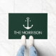 Nautical Custom Boat Nom ancre blanche pin foncé vert Doormat. Personnaliser texte voile nautique texte, nom du capitaine. Nom du bateau, magasin, nom commercial. Design minimaliste, simple et élégant. idéal pour les navigateurs, les plaisanciers, la voile et la navigation de plaisance. Bonne navigation !