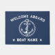Paillasson Ancre nautique Marine Blue Welcome Aboard Nom du b
