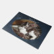 Il s'agit d'un paillasson avec une photo originale d'un espagne regal, hépatique et blanc de Springer anglais avec un arrière - plan bleu étoilé.