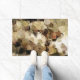 Un design artistique d'arbres dans la forêt avec de riches bruns, blancs et crèmes avec une touche de vert, orange et jaune.