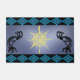 Southwestern Arizona Sun Kokopelli Rug Doormat Couleur bleu vif qui vous permet de customiser des couleurs arrière - plans à votre décor. Les cultures amérindiennes de Kokopelli. Attribué à des aliens anciens ou à l'art tribal et inspiré de dessins rupestres et rupestres. Customisez vos couleurs et styles de tapis de porte de style sud-ouest Amérindien. Super idée cadeau.