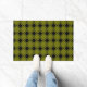 Ce mat de porte a une conception moderne du milieu du siècle de diamants noirs solides à l'intérieur des contours de diamants noirs sur un champ de vert.