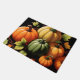 Cette oeuvre botanique saisonnière présente une variété de citrouilles en orange, jaune et vert avec quelques feuilles contre un arrière - plan noir. Parfait pour la saison d'automne !