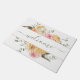 Ce tapis de porte d'accueil d'automne présente de belles fleurs rose et jaune peintes à la main, des citrouilles crème et de la verdure avec un script vert sage "bienvenue".