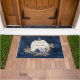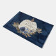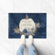 "Automne Citrouille Marine Welcome Mat Nom de famille." Parfait comme cadeau d'hôtesse pour une famille qui partage sa maison avec vous pour le week-end ou comme tapis de bienvenue pour vos invités ! Personnalisé avec le nom et le message de votre famille cet arrière - plan en bois rustique bleu marine avec un citrouille blanc et feuillage d'automne muet dans les tons terre avec des fleurs poussiéreuses et bleu marine peintes en aquarelle par Audrey Jeanne Roberts, artiste et designer de renommée internationale, copyright de tous droits réservés.