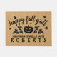 Natte classique et élégante pour la saison d'automne - "chute heureuse vous" texte avec un citrouille, les vignes, le feuille, et votre nom de famille