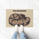 Ce tapis de bienvenue est une illustration réaliste d'un serpent python à bille enroulé en brun foncé et bronzé. Il est prêt à être personnalisé avec un nom en lettres brun foncé. Fait un grand cadeau pour les propriétaires de serpents d'animaux de compagnie.