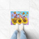 Éclaircissez votre décor extérieur avec un natte sur mesure. De beaux tournesols et papillons flottent dans un tapis de porte de jardin fleuri. Super idée cadeau.