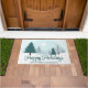 Un magnifique paysage hivernal avec pins verts turquoises et terrain couvert de neige sur un tapis de porte de vacances d'affaires personnalisé. Customisez cette société Happy Holidays décor avec votre propre nom d'entreprise.