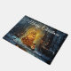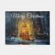 Cette belle scène de Noël comporte deux mâles avec les andouillers allumés se tenant près d'un bel arbre de Noël et d'un bonhomme de neige. Le texte est facultatif et facilement changé.
