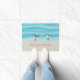 Habillez votre maison de plage avec cette natte personnalisée ! Deux bécasseaux trottinent le long du bord d'une mer bleue au-dessus d'un nom de famille (ou de tout autre texte) écrit dans le sable. Il est parfait pour célébrer un mariage de plage, ou exprimer un amour de l'océan et des oiseaux de rivage mignons !