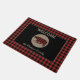 Un ours en silhouette plaid de buffle est au centre d'un cercle bronzé sur ce tapis de porte attrayant. Le cercle est placé sur un arrière - plan noir, encadré d'une bordure en plaid rouge et noir assortie. Votre texte personnalisé est dans le bronzage correspondant au-dessus et au-dessous du cercle et de l'image d'ours. Parfait pour un cabine, maison boisée, mais confortable à la maison dans la ville aussi!