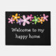 Un joli tapis d'accueil fleuri orne le pas de la porte d'entrée de votre maison et accueille tous vos invités, amis et famille d'une manière chaleureuse et branchée. Changez le texte pour dire Bienvenue dans mon jardin et utilisez-le comme tapis de bienvenue dans le jardin.