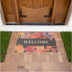 Ce tapis de bienvenue rustique est décoré de feuillage de chute d'aquarelle dans les tons de rouille, et marron. Personnalisable en changeant le mot Bienvenue. Utilisez l'outil de conception pour modifier la taille, le style ou la couleur du texte. Parce que nous créons notre oeuvre, vous ne trouverez pas cette image exacte d'autres designers. Aquarelle originale © Michele Davies.