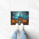Ce tapis de bienvenue d'Halloween créatif présente une illustration d'un ensemble éffrayant de citrouilles éclairants. N'hésitez pas à ajuster toutes les options disponibles comme vous le souhaitez.