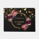 Un arrière - plan noir chic avec des étoiles dorées qui dégoulinent. Décoré d'un cadre géométrique en faux or et de fleurs aux couleurs bordeaux, rose et or rose, fleurons. Avec le texte : Bienvenue. Personnalisez et ajoutez votre nom de famille. Lettres de couleur dorée.