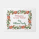 Belle verdure de Noël, poinsettias, baies et cadeaux en aquarelles colorées. Centre dit Bienvenue à notre maison et vous le personnalisez avec votre nom de famille. Ce sera un si beau complément à votre entrée pendant la période des fêtes !
