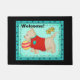Montrez à votre chien l'amour avec ce tapis de porte de bienvenue scottie pour votre maison ou votre travail. Le mot "bienvenue" peut être personnalisé à un autre mot ou nom. Ce tapis est orné d'un Scottie Terrier couleur champagne fantaisie qui porte un tee - shirt rouge avec garniture turquoise turquoise. Une boule jaune et rouge est à côté de lui. L'arrière - plan est une bande bleue turquoise turquoise avec une bordure turquoise avec des empreintes de pattes noirs. Une bordure de ligne serpentine se trouve à l'intérieur de la frontière turquoise. Deux fleurs jaunes sont au-dessus du chien. Ce chien mignon, câlin et tendance est l'art original de Phyllis Dobbs et fera fondre le coeur d'un amoureux des chiens. Ce tapis de porte Scottie pour chien est entièrement personnalisable pour en faire votre propre !