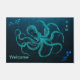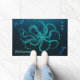 Bleu océanique profond avec pieuvre et 2 écoles de natte de poisson avec Initiales et le mot Bienvenue. Vous pouvez personnaliser les deux en cliquant sur la zone de personnalisation. Changez les initiales et le mot bienvenue ou si vous enlevez ce qui est là et laissez-le vide alors ils disparaîtront tous les deux. Un beau paillasson partout où vous vivez.