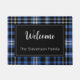 Paillasson Blue Plaid Welcome Monogramme Nom de famille
