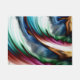 Formes de rubans de couleur vert émeraude accentuées de bleus métalliques, de teintes roses profondes et dorées; décalées par des blancs doux de neige