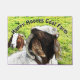 Ce tableau en fresque d'un Boer Buck étant son moi bouc - et un joli Boer doe dans l'observation arrière - plan - le texte dit "Happy Hooves Goat Farm" (Vous pouvez changer ce texte d'accueil) Boer Chèvre Lovers Welcome Mat - idéal pour les spectacles de chèvres