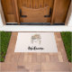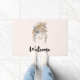 Un tapis de bienvenue avec un joli bouquet de fleurs aux couleurs neutres de marron, pêche et orange. Un attrapeur de rêve à plumes ajoute une élégante touche mystique.
