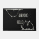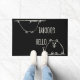 Bonjour au revoir la natte mignonne de chien de griffonnage, a une salutation pour vous si your'e venant ou allant ! Arrière - plan noir avec l'illustration ene ivoire.