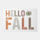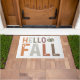 Ce design sur le thème de l'automne accueille chaleureusement la saison d'automne avec l'expression "Hello Fall". Les mots sont arrangés dans une disposition simple mais visuellement attrayante, avec "Hello" placé au-dessus de "Fall". Chaque lettre de l'expression est présentée dans une police grasse et bloquée, avec une texture légèrement désespérée, lui donnant un look rustique et patiné qui complète le thème automnal.