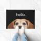 Bienvenue à vos invités chez vous avec une photo mignonne et drôle de JoDog le Beagle souriant qui vous espionne et le mot simple, "bonjour". sur un arrière - plan noir. Grand cadeau pour le chien ou l'amoureux des animaux ou comme cadeau de ménage. Photographie de JoDog et design © par TK Goforth, tous droits réservés.